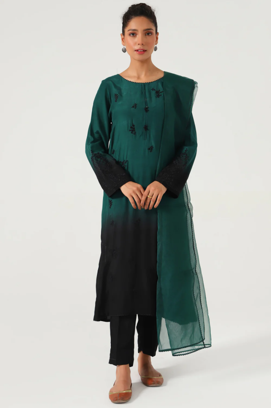 ZEEN – Stitched 3 Piece Embroidered Raw Silk Outfit