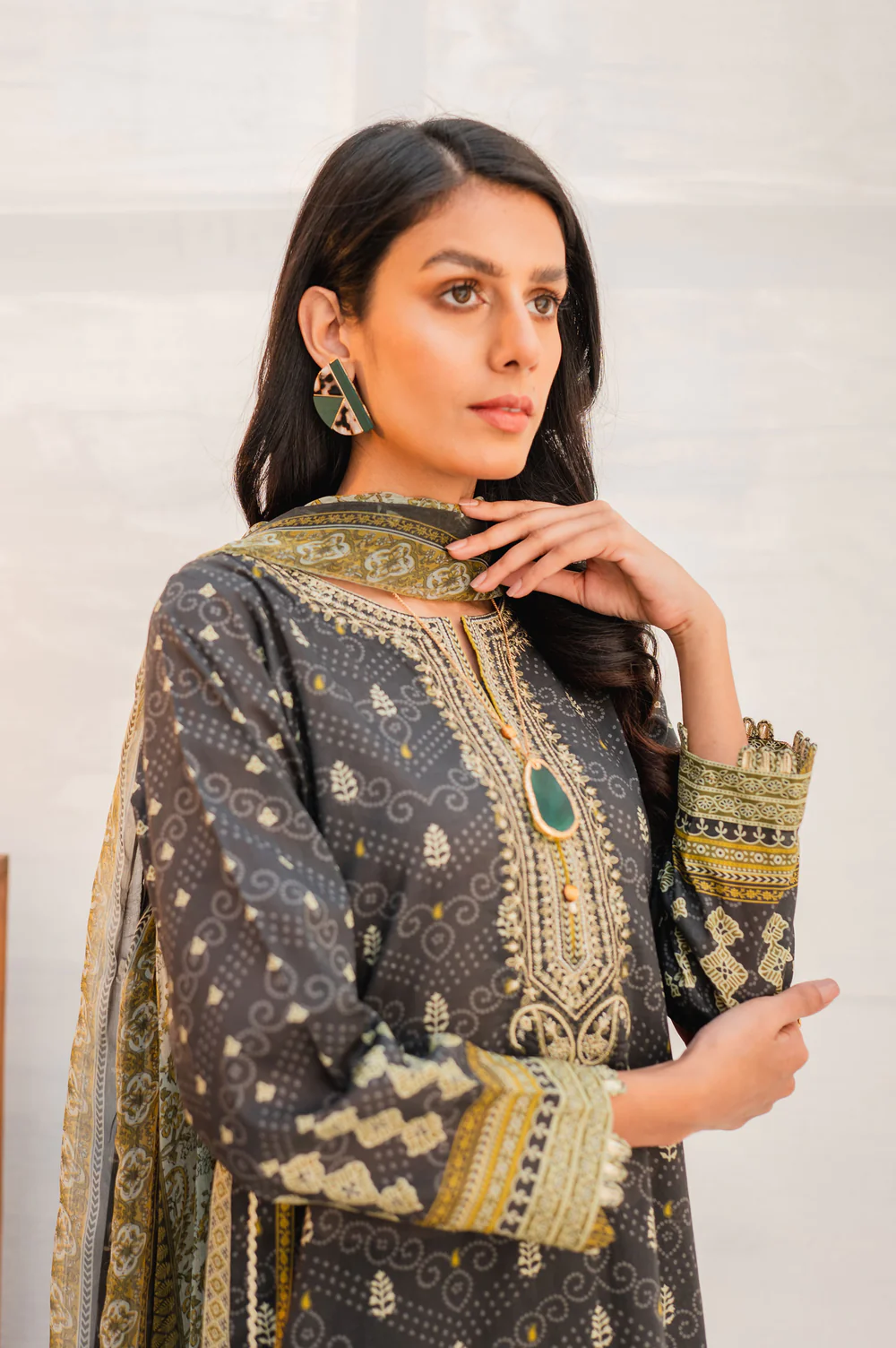 ZEEN – Stitched 3 Piece Embroidered Lawn with Chiffon Suit